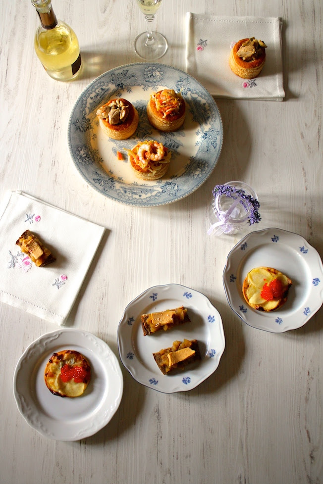 Ya pasaron dos de las m谩s importantes fechas de la Navidad y se nos viene encima la m谩s informal, la de Nochevieja. Quiz谩s en esa cena se presta m谩s atenci贸n al picoteo, a los aperitivos, que en Nochebuena y aqu铆 te traigo unos volovanes de pavo trufado y gambas agridulces, una mini tarta de patata y huevas de salm贸n y unos canap茅s de foie sobre chutney de manzana y vainilla. ¿Por cu谩l empezamos?