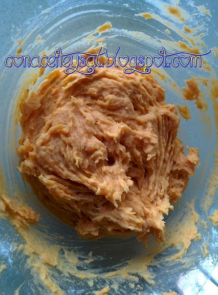Poco a poco a la masa del boniato/batata le agregamos la harina y removemos